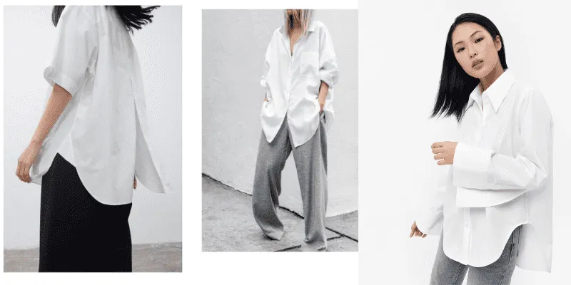 Tránh: Những chiếc áo sơ mi rộng oversize hay họa tiết trơn, chúng khiến vòng một của bạn trở nên bằng phẳng trong khi vòng hai thì biến mất hoàn toàn.